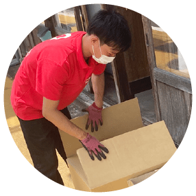 見積もり時に決定した日時に作業開始。ゴミの分別・梱包などの事前準備から対応します。